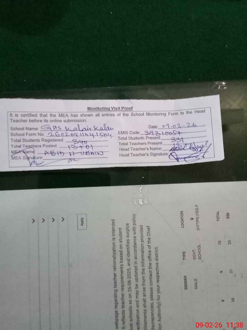 | EMIS Code: 39310057 | Name of School: GHS KALAIR KALAN | |||