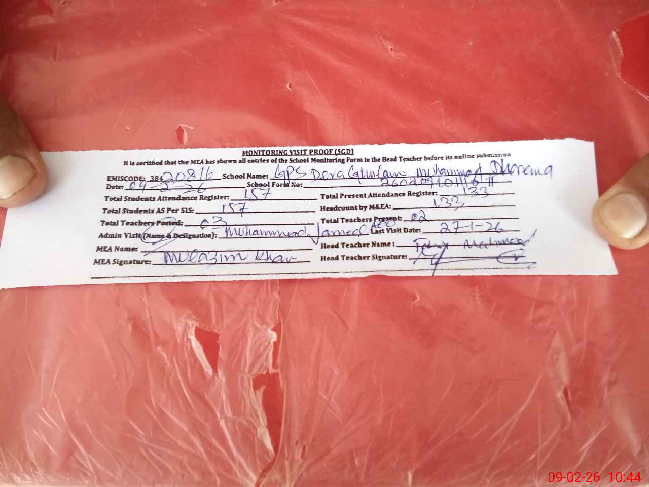| EMIS Code: 38420816 | Name of School: GPS DERA GHULAM MUHAMMAD DHAREMA | |||