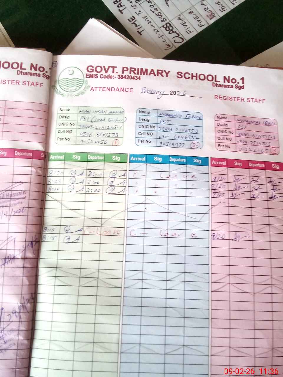 | CNIC | Full Name | Designation | R/C | Absence during last cal. month |