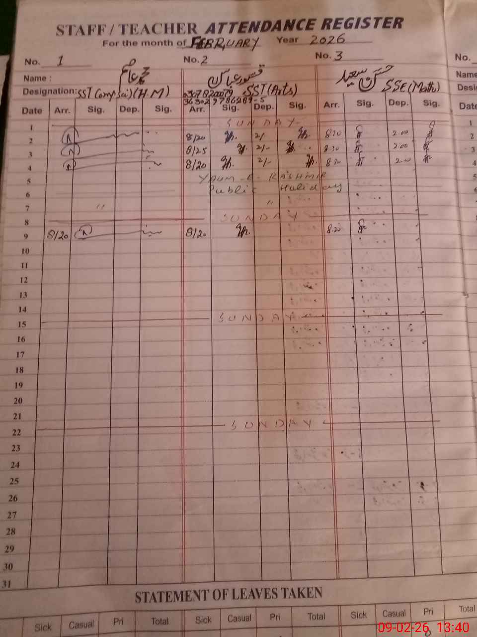 | 36**** | Sh**** Ah**** | EST Science | Regular | 0 | 0 | 0 | 0 | 0 | 0 | 0 | 0 | 0 | Absent (Un-Authorized) |