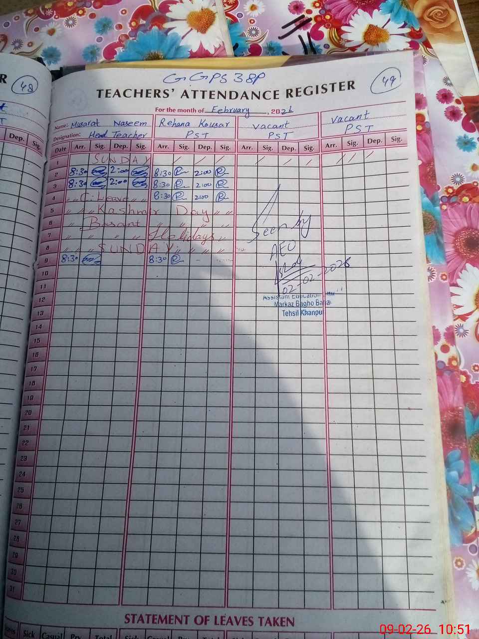 | Name: MU**** NA**** Designation: (School Headmaster's/Headmistress's) PST Phone/Cell Number: 03**** |