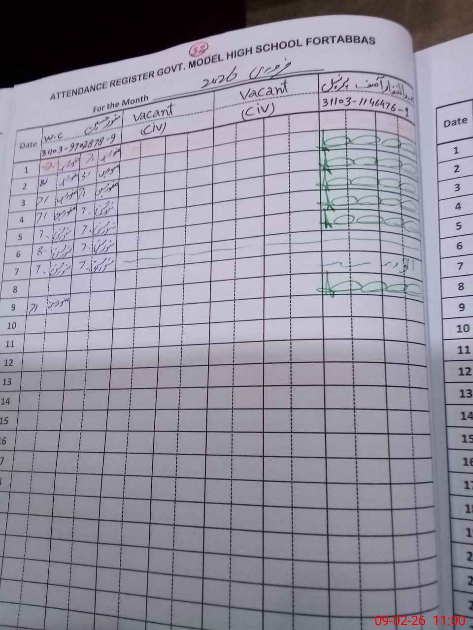 | CNIC | Full Name | Designation | R/C | Absence During Last Calender Month |