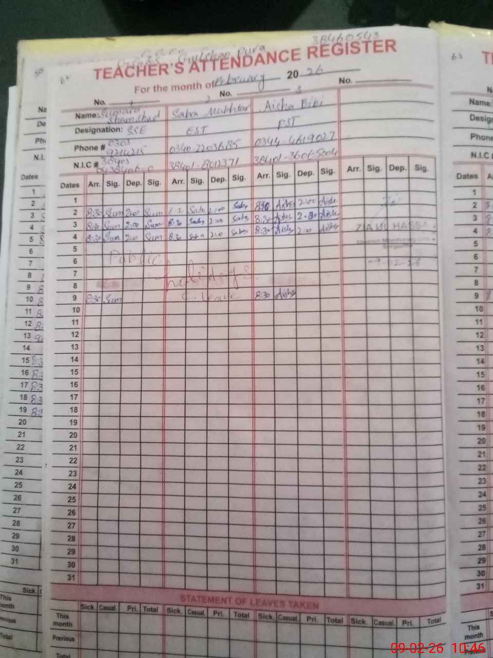 | CNIC | Full Name | Designation | R/C | Absence During Last Calender Month |