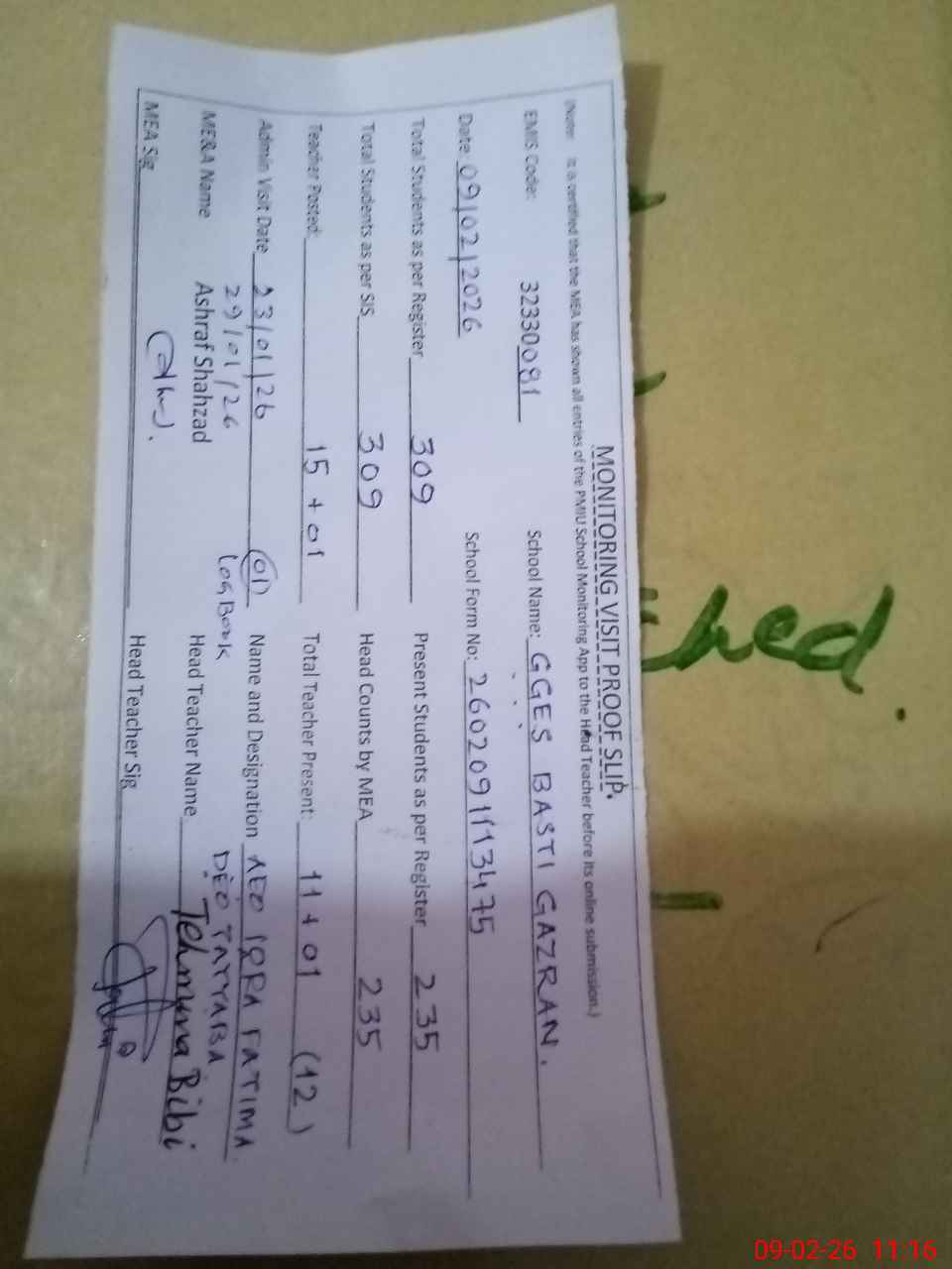 | EMIS Code: 32330081 | Name of School: GGES BASTI GAZRAN | |||