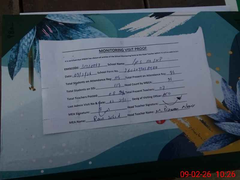 | EMIS Code: 31310047 | Name of School: GES CHAK NO 110/NP S | |||