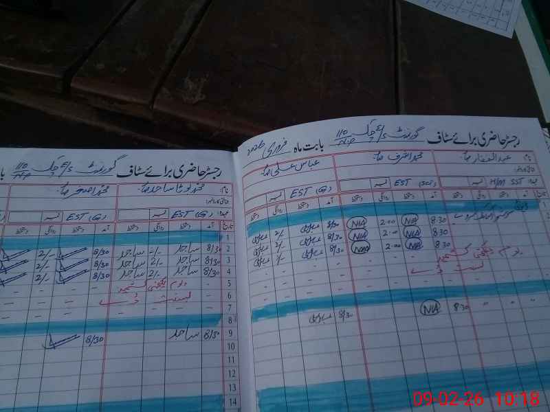 | Total no. of Classrooms: 5 No. of Classrooms Used for Teaching: 4 No. of Classrooms Storing Old Furniture, FTBs, etc: 0Comments if Any: Satisfactory NSB Cash book and FTF record not found |