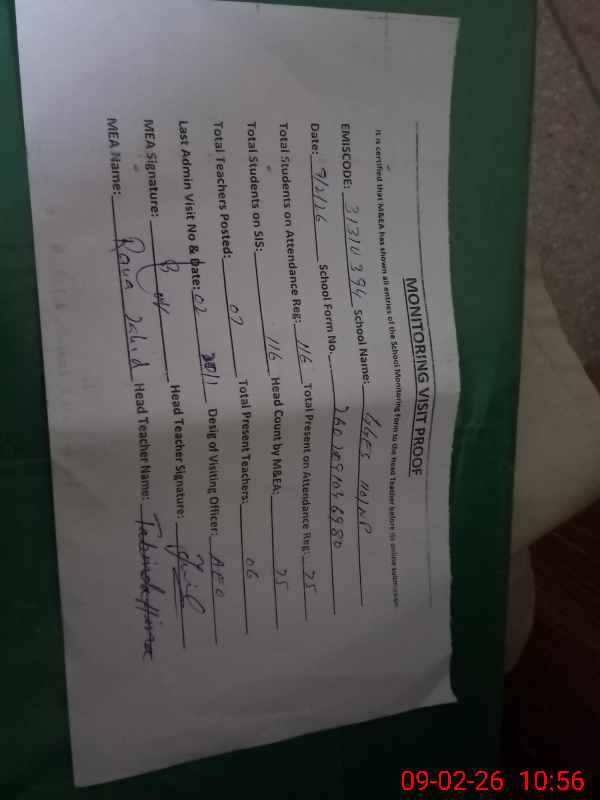 | Certified that this School was Inspected by the Undersigned MEA/DMO Today and the Information Stated Above is as Per Record. | |||||