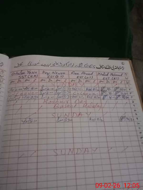 | CNIC | Full Name | Designation | R/C | Absence During Last Calender Month |