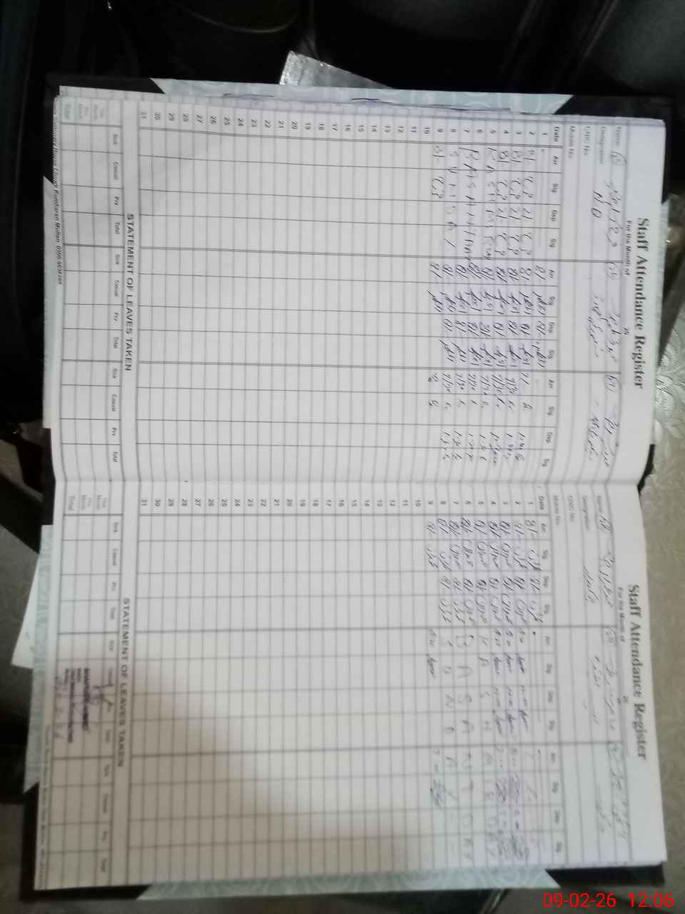 | CNIC | Full Name | Designation | R/C | Absence During Last Calender Month |