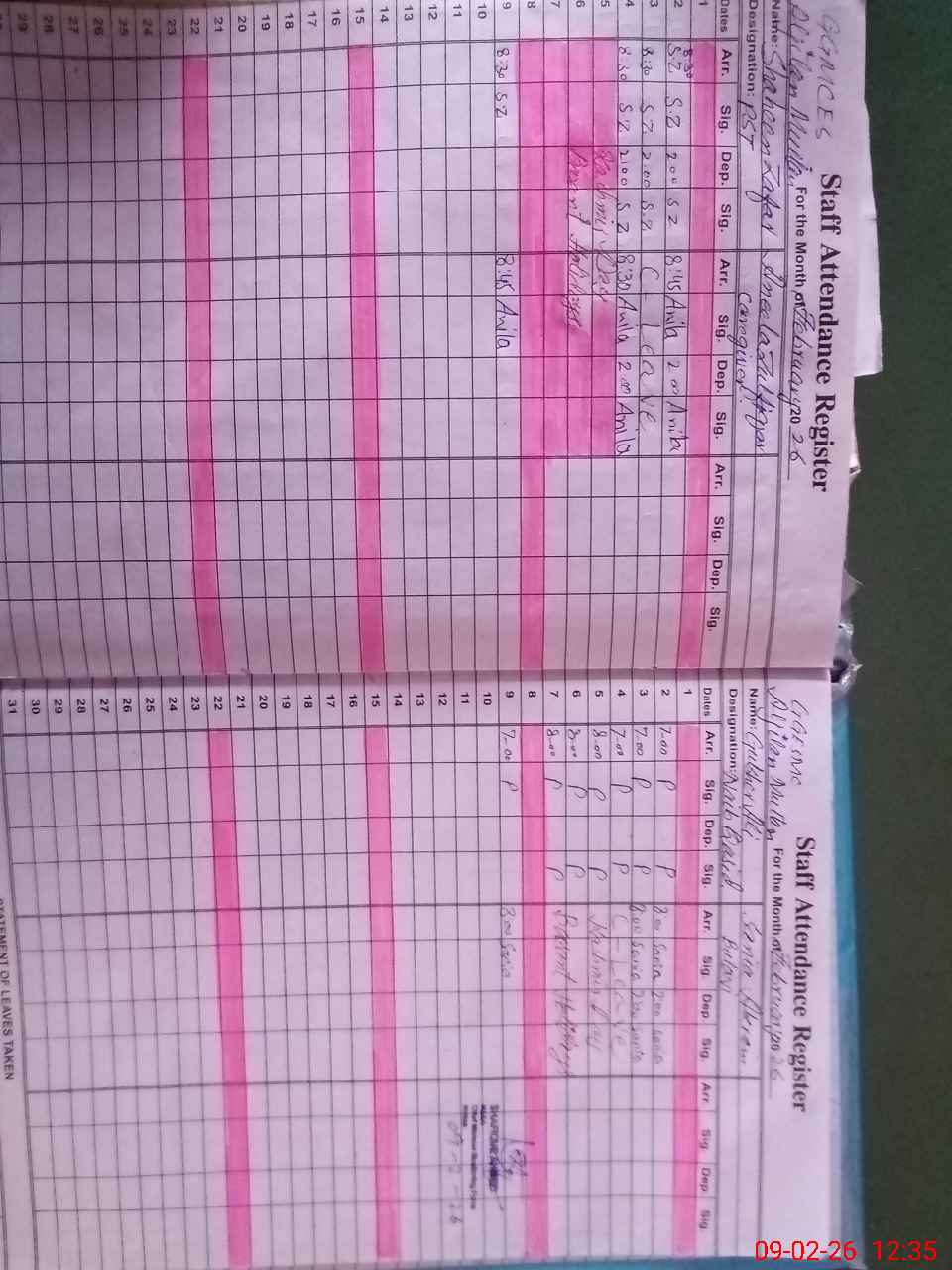| Leave | Duty | Absent | Maternity | Medical | Ex- Pak |