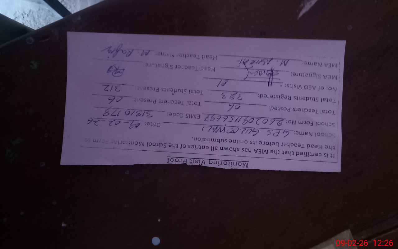 | EMIS Code: 31310179 | Name of School: GPS GULOOWALI (After Noon) | |||