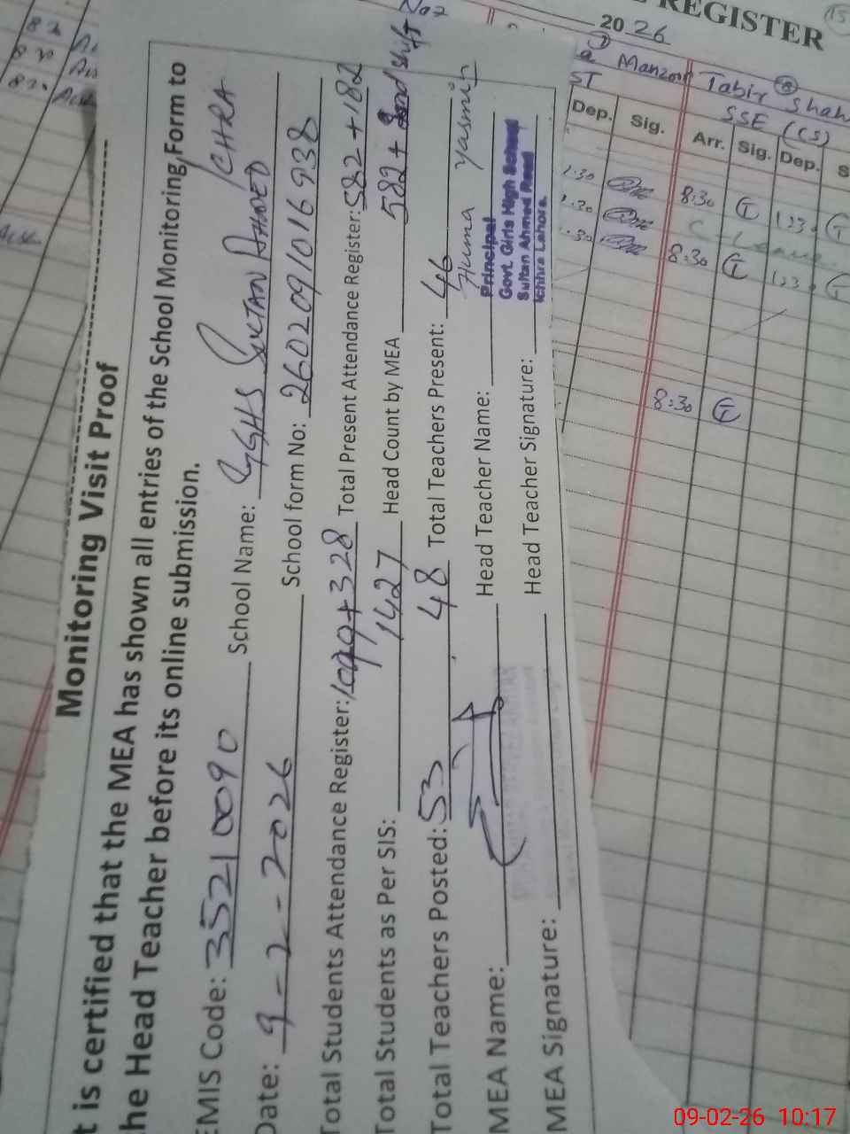 | EMIS Code: 35210090 | Name of School: GGHS SULTAN AHMED ROAD ICCHRA LAHORE | |||