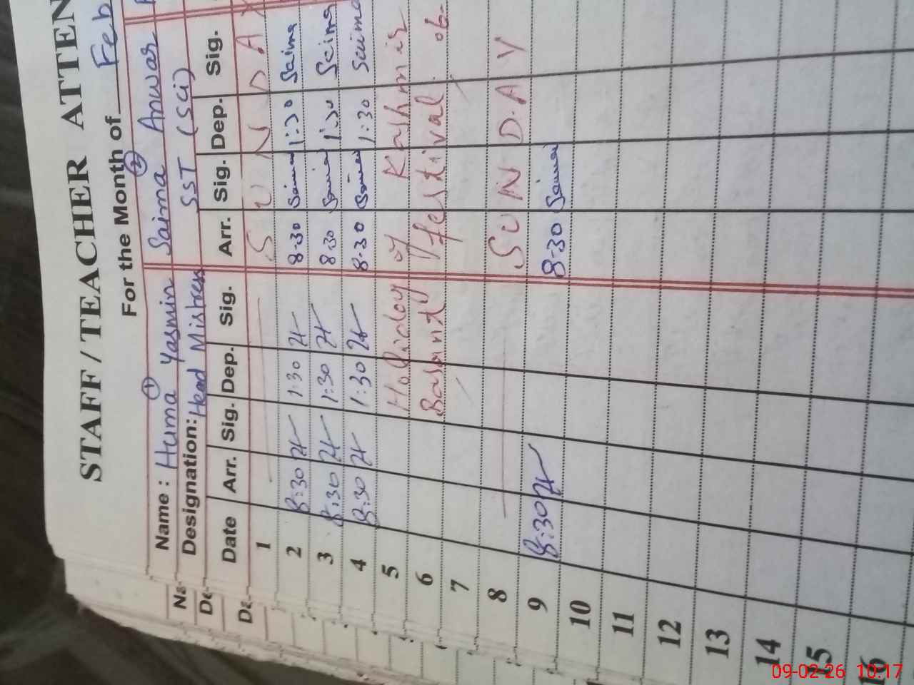 | Name: Hu**** Ya**** Designation: (School Headmaster's/Headmistress's) Incharge Head Phone/Cell Number: 03**** |