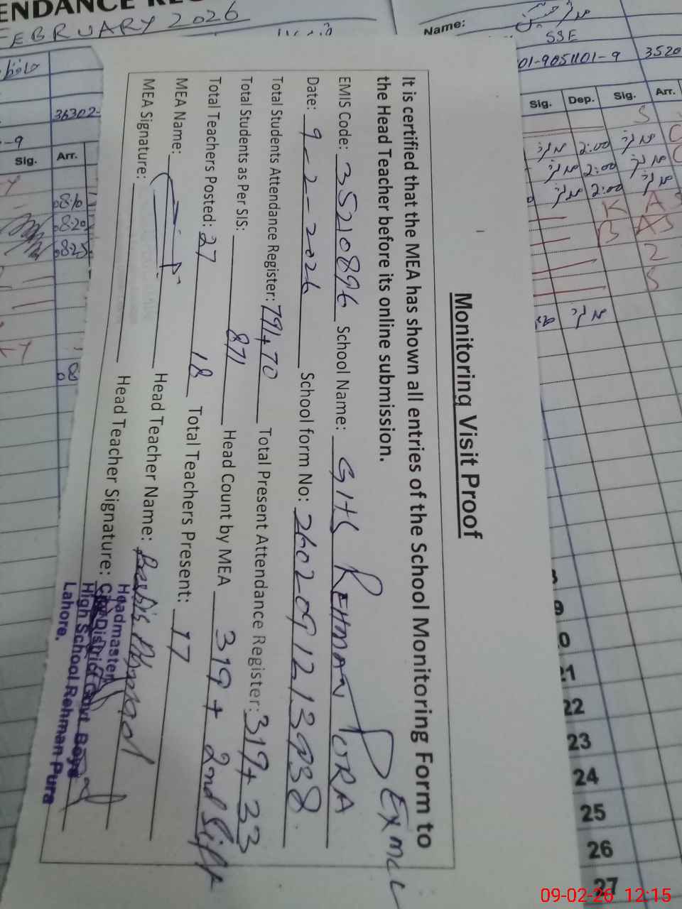 | EMIS Code: 35210896 | Name of School: GHS REHMAN PURA(EX-MCL) | |||