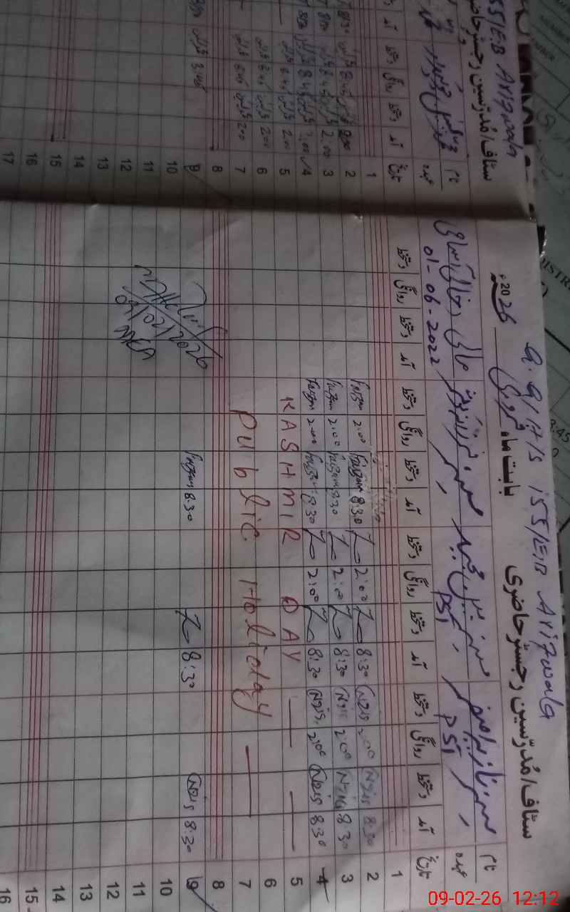 | CNIC | Full Name | Designation | R/C | Absence During Last Calender Month |