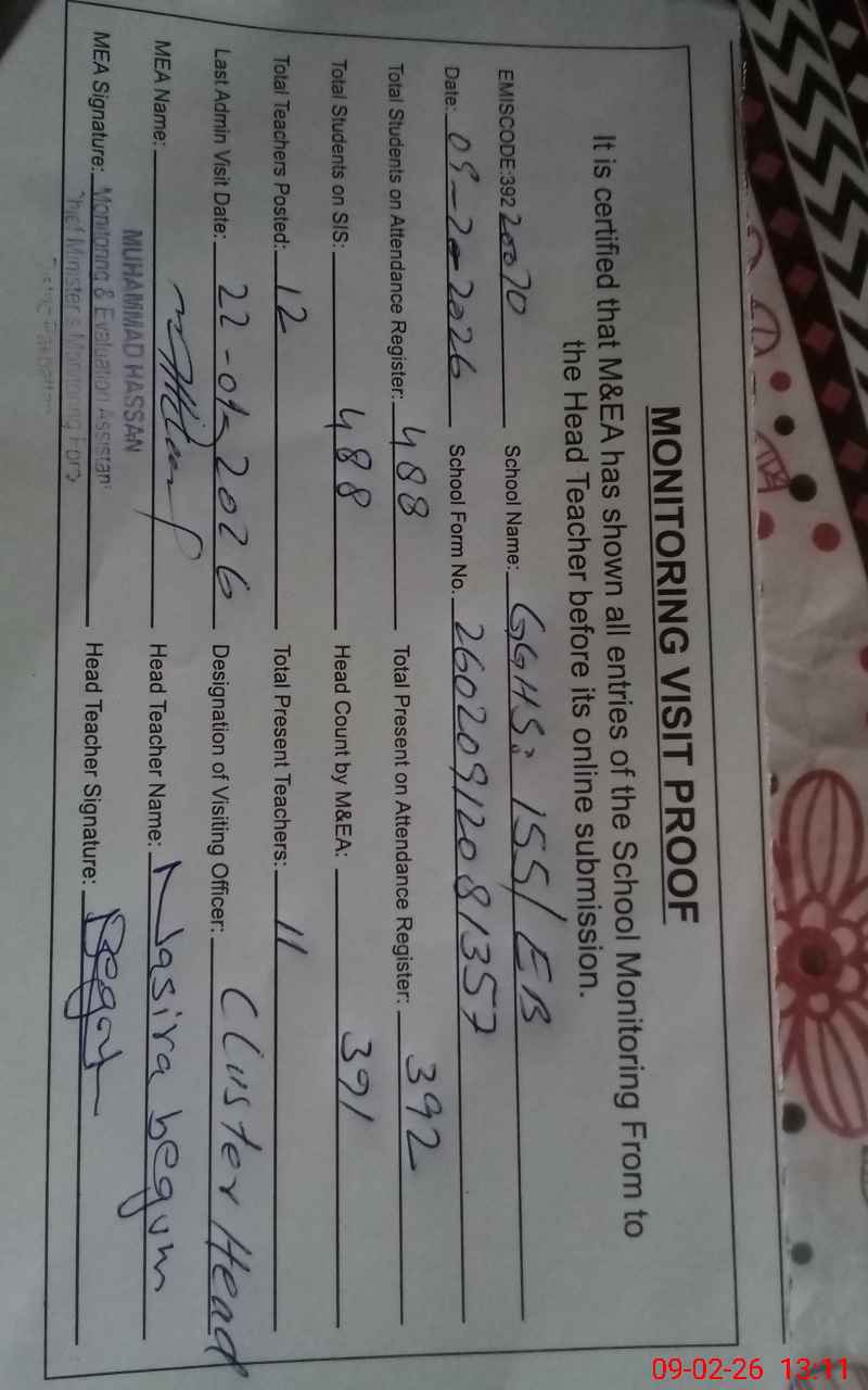| Certified that this School was Inspected by the Undersigned MEA/DMO Today and the Information Stated Above is as Per Record. | |||||