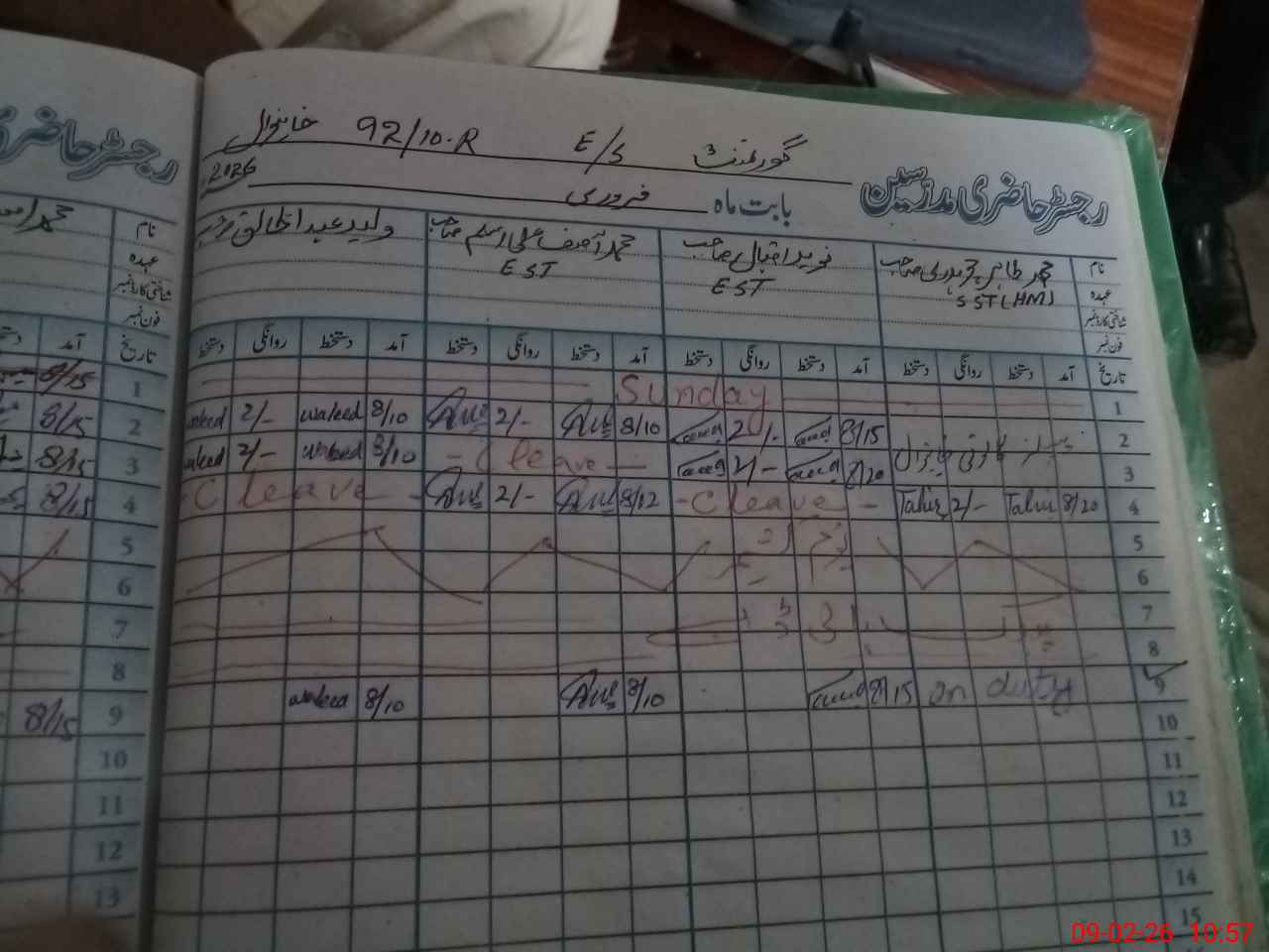 | CNIC | Full Name | Designation | R/C | Absence During Last Calender Month |