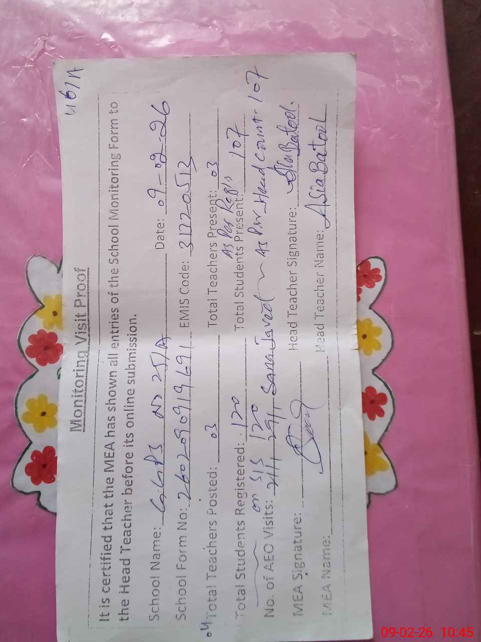 | EMIS Code: 31320513 | Name of School: GGPS CHAK NO.25/A | |||