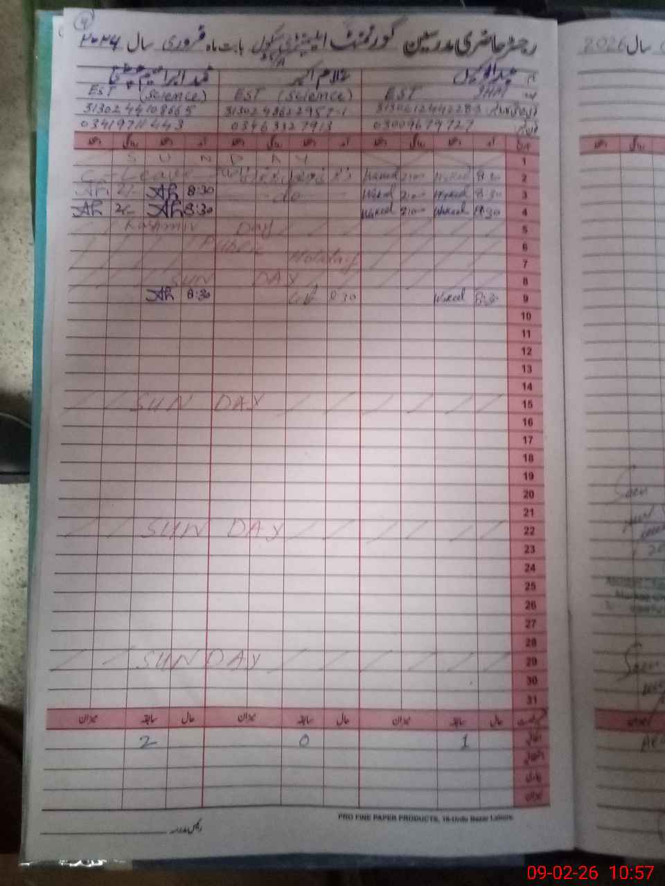 | Name: MU**** IR**** Designation: (School Headmaster's/Headmistress's) SST (Sci) Phone/Cell Number: 03**** |