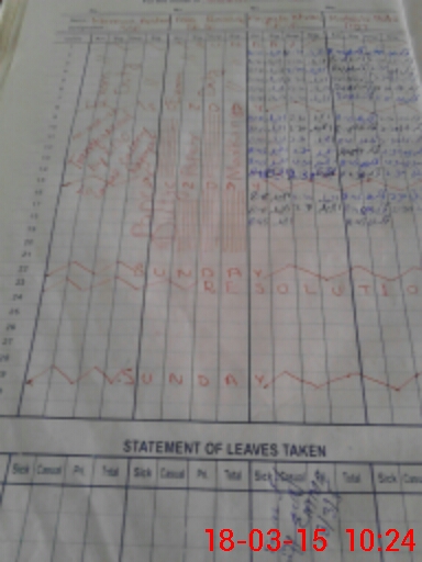 | CNIC | Full Name | Designation | R/C | Absence During Last Calender Month |