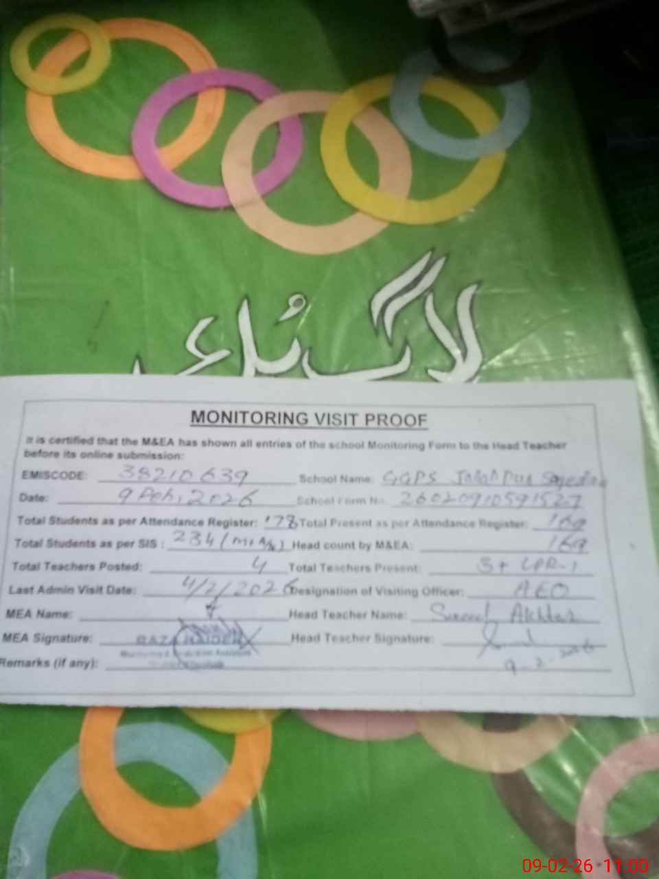 | EMIS Code: 38210639 | Name of School: GGPS JALALPUR SAYEDAN | |||