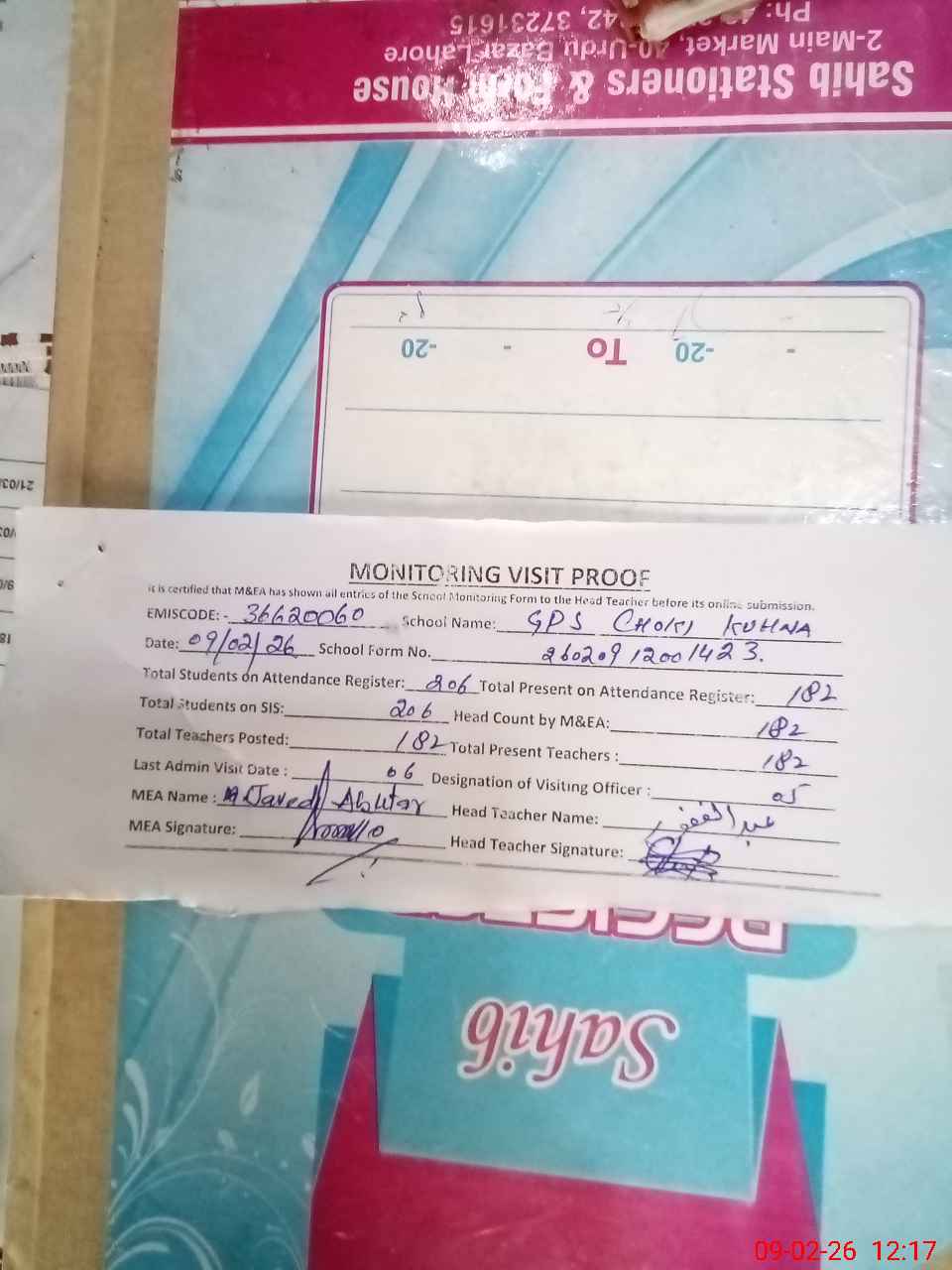 | EMIS Code: 36620060 | Name of School: GPS CHOKI KUHNA | |||