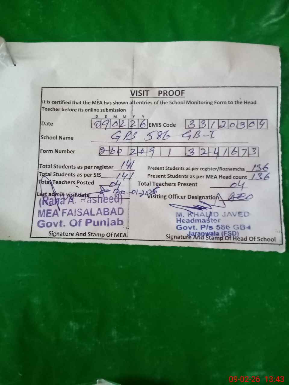 | EMIS Code: 33120304 | Name of School: GPS 586 GB I | |||