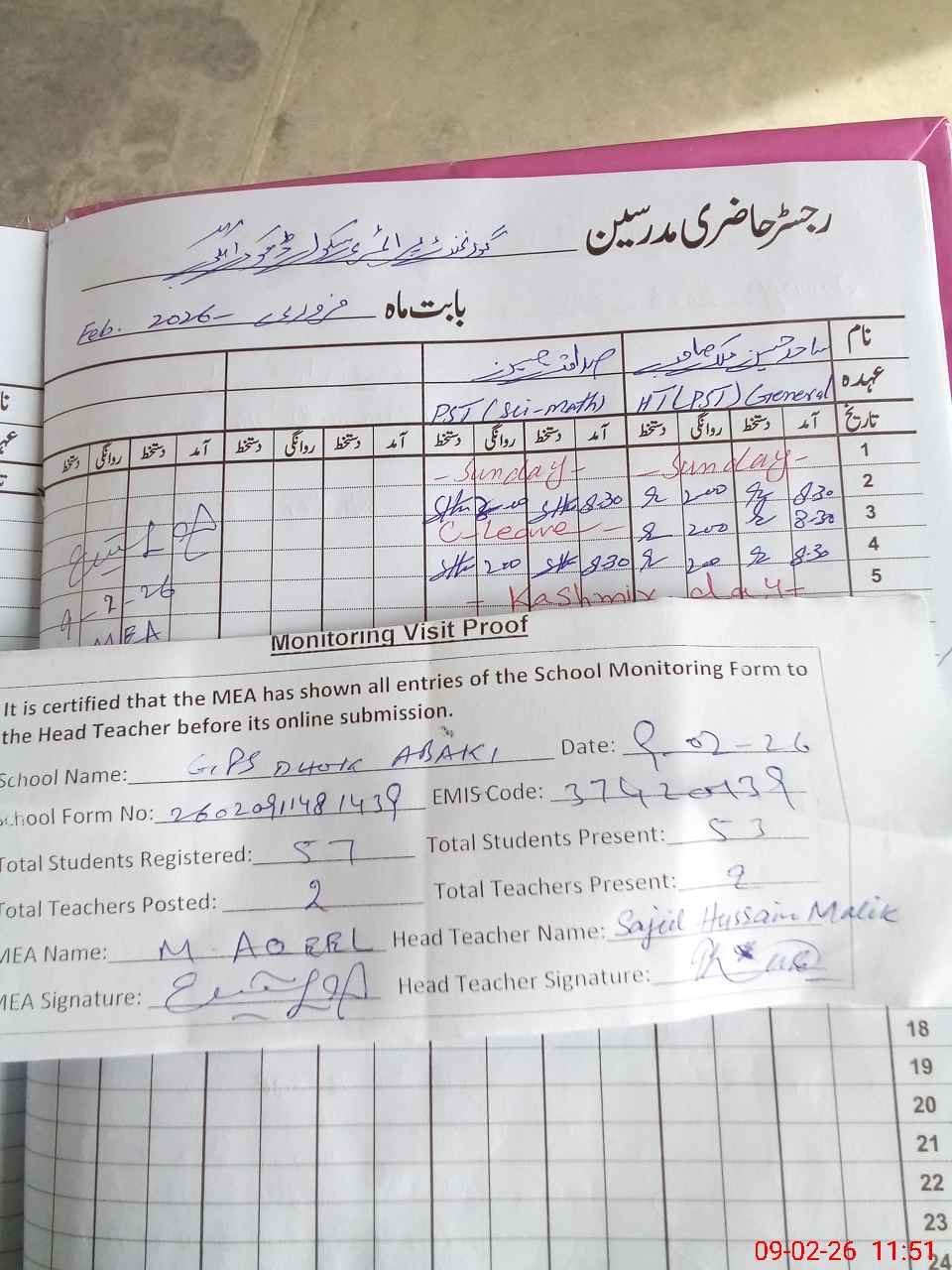| EMIS Code: 37420139 | Name of School: GPS DHOK ABKI | |||