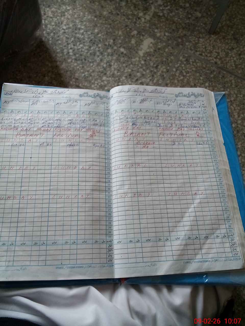 | Total no. of Classrooms: 13 No. of Classrooms Used for Teaching: 11 No. of Classrooms Storing Old Furniture, FTBs, etc: 0Comments if Any: Raheel Khan JC Absent from the school we 5 December 2025 to uptill now and NSB and FTF record not maintain and further more no NSB and FTF record present in the school |