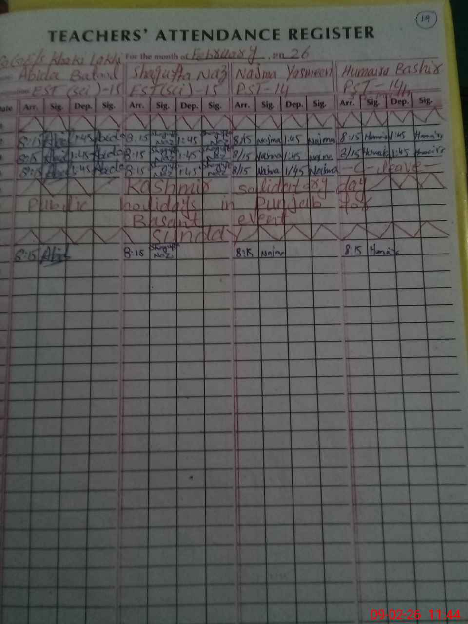 | CNIC | Full Name | Designation | R/C | Absence During Last Calender Month |