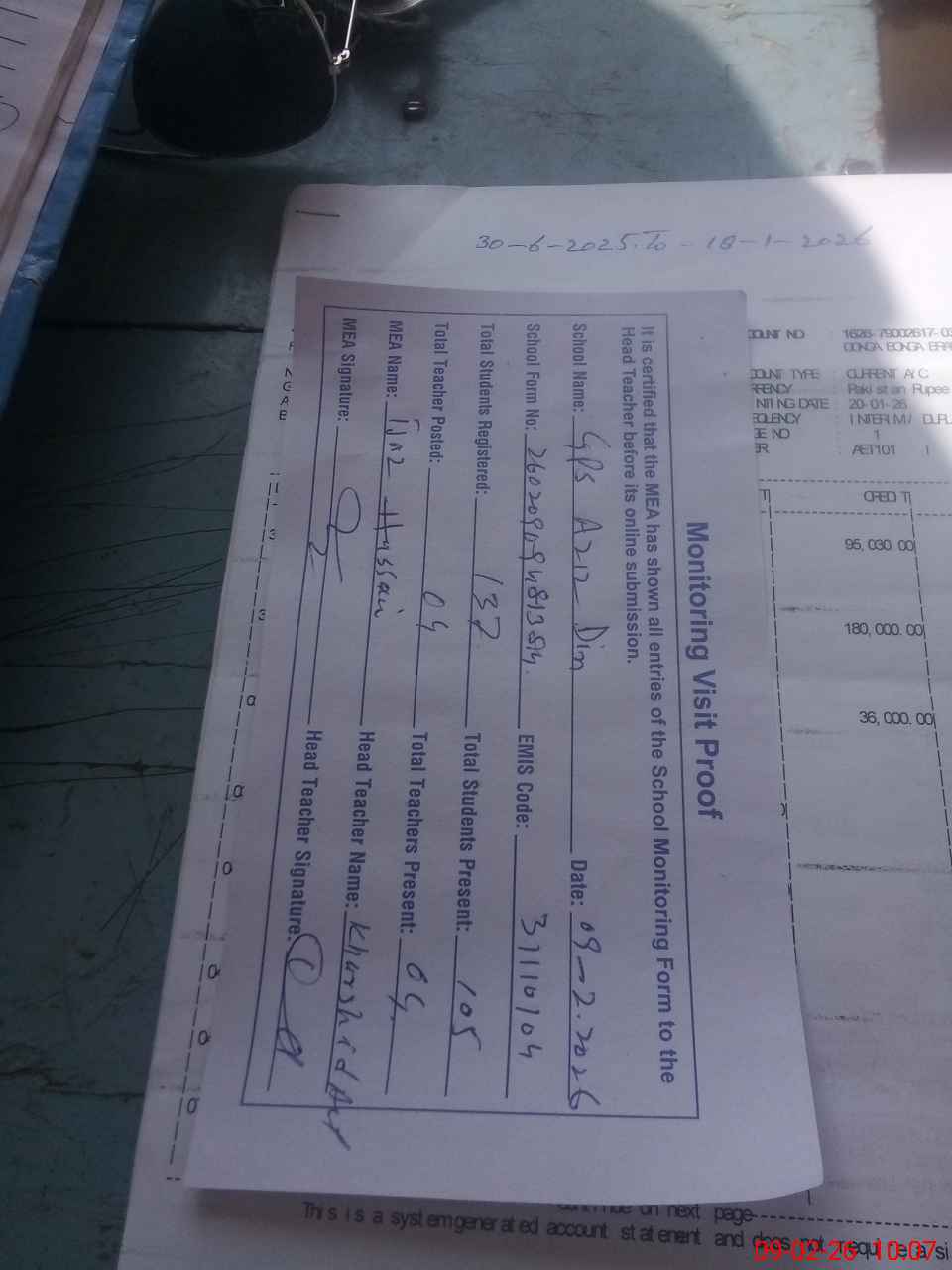 | Attendance Register | Head Teacher | MEA with School | Visit Proof |