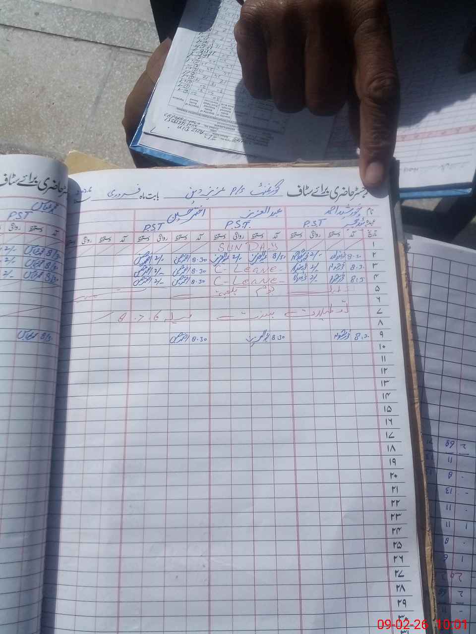 | CNIC | Full Name | Designation | R/C | Absence During Last Calender Month |