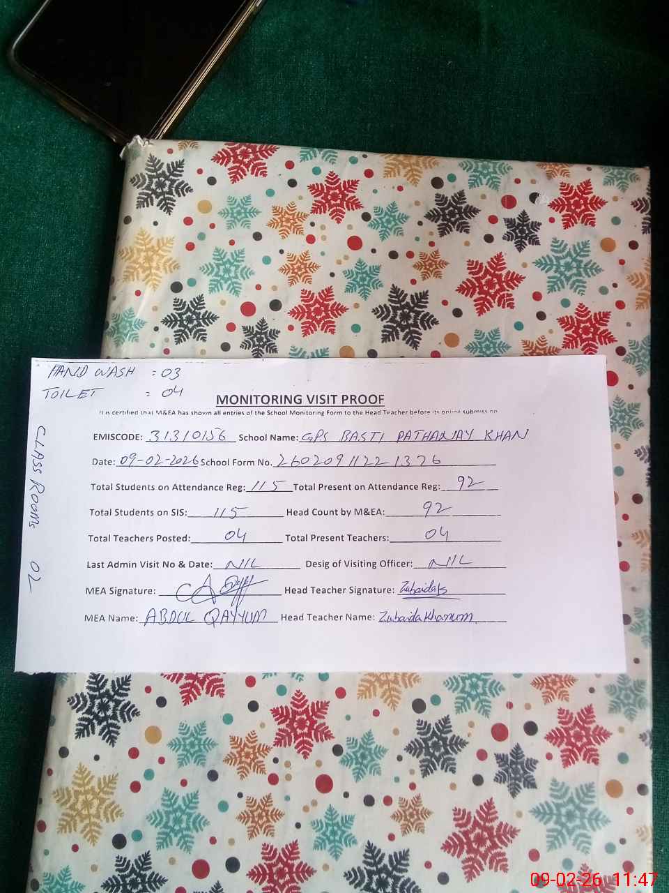 | EMIS Code: 31310426 | Name of School: GGPS BASTI PATHANY KHAN | |||
