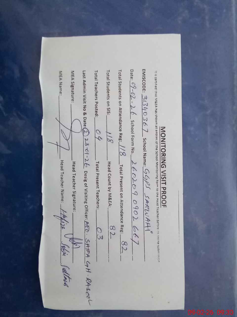 | EMIS Code: 31340367 | Name of School: GGPS SARWAHI | |||