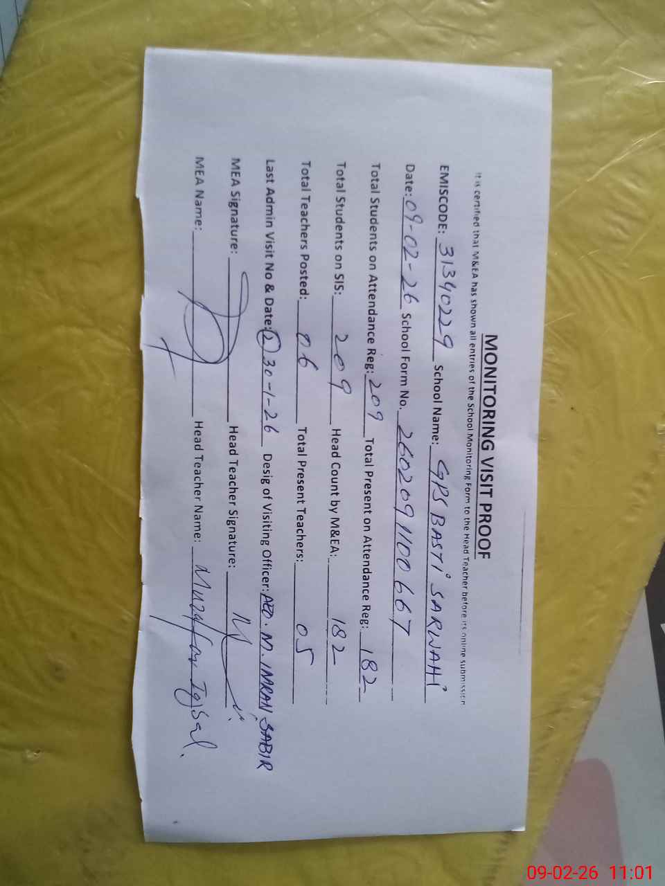 | EMIS Code: 31340229 | Name of School: GPS BASTI SARWAHI | |||