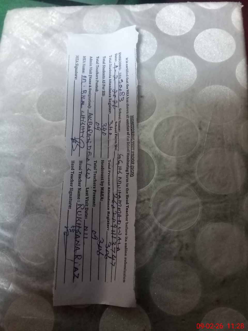 | Certified that this School was Inspected by the Undersigned MEA/DMO Today and the Information Stated Above is as Per Record. | |||||