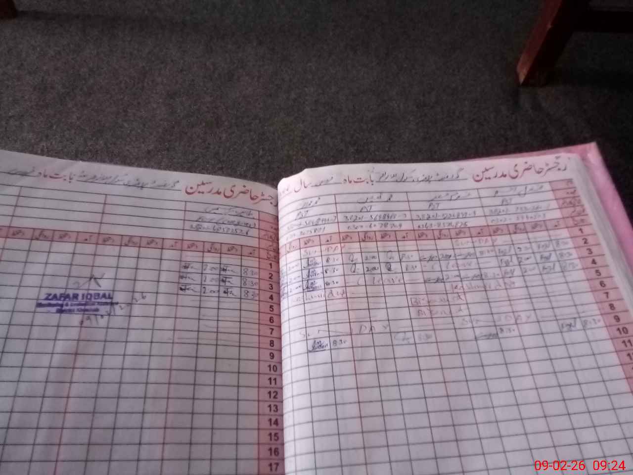 | CNIC | Full Name | Designation | R/C | Absence During Last Calender Month |