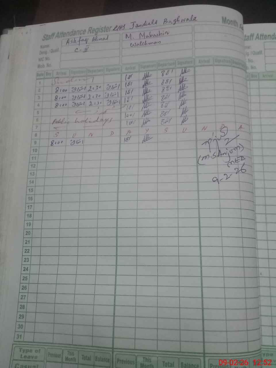 | 37**** | Ah**** Na**** Qa**** | Temporary | 0 | 0 | 0 | 0 | 0 | 0 | 0 | 0 | 0 | Casual | |