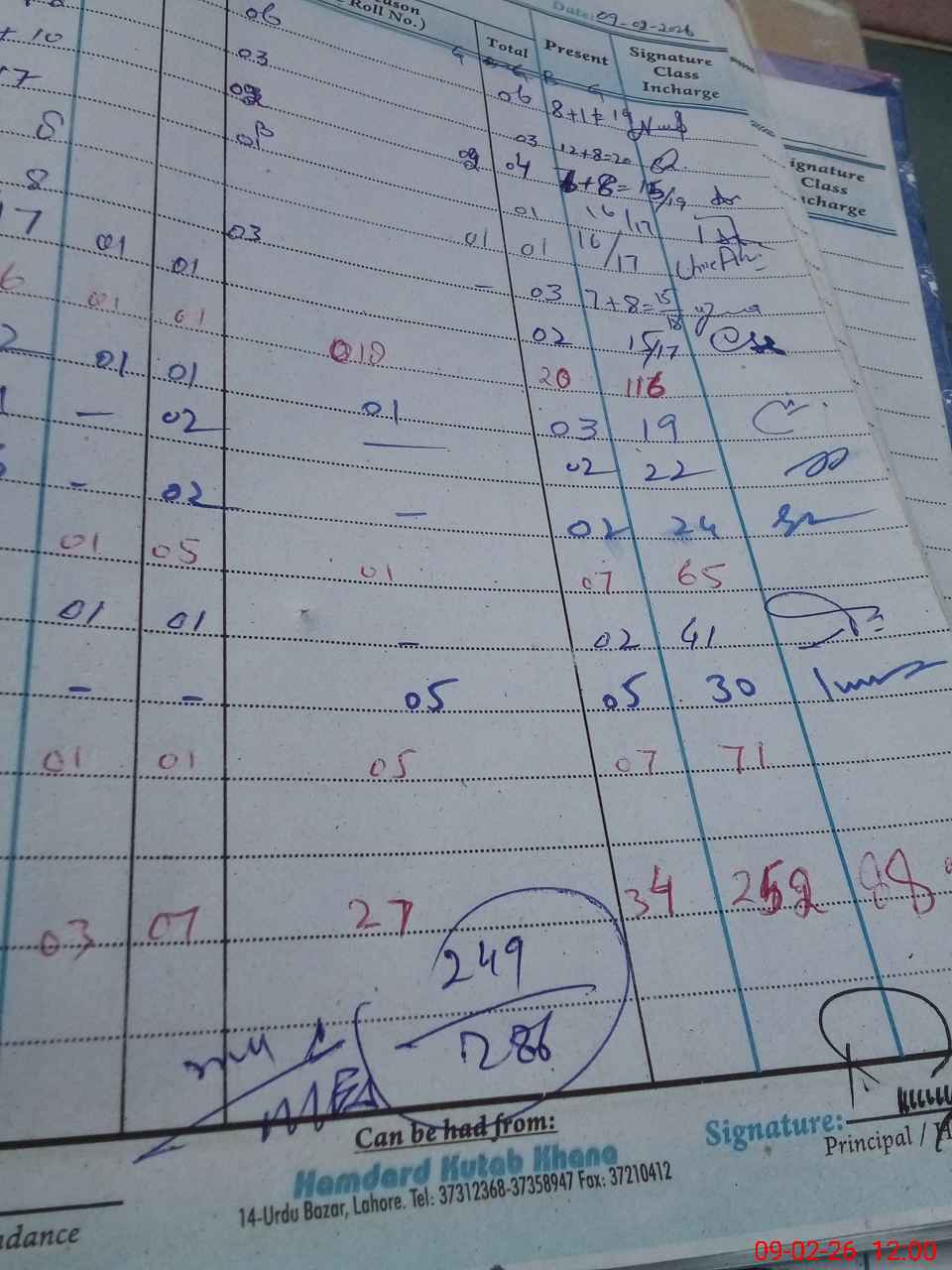| Total Students Present | 0 | 19 | 15 | 16 | 16 | 15 | 15 | 18 | 21 | 24 | 41 | 29 | 249 | |||