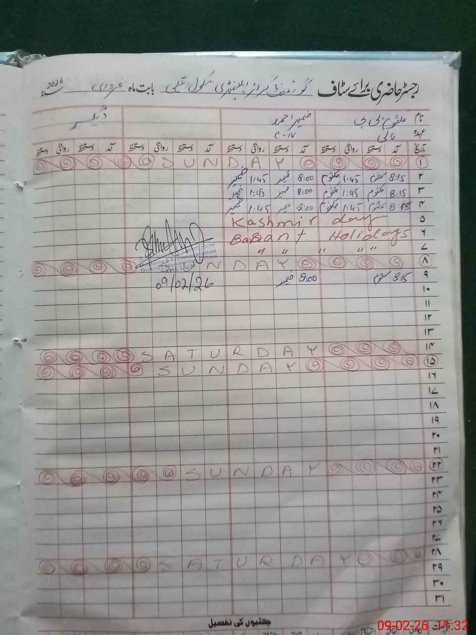 | CNIC | Full Name | Designation | R/C | Absence During Last Calender Month |