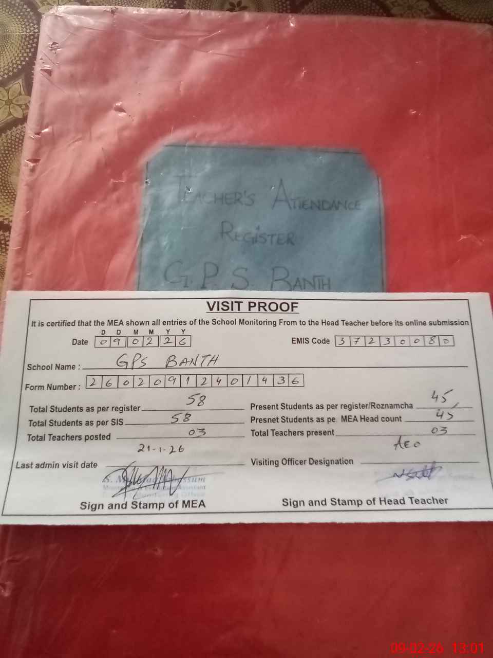 | EMIS Code: 37230080 | Name of School: GPS BANTH | |||