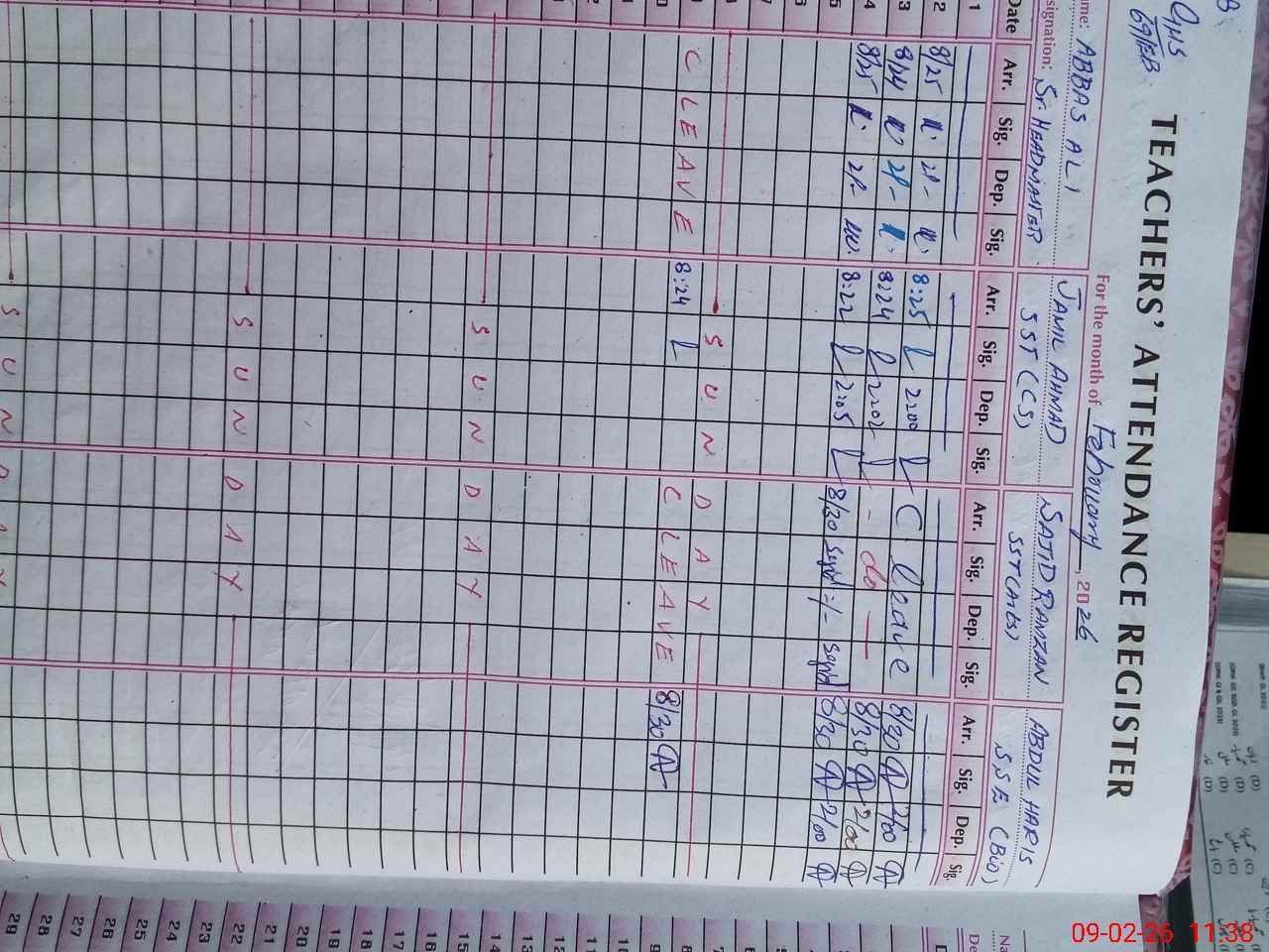 | 36**** | Ab**** Al**** | Sr. Headmaster | Regular | 1 | 0 | 0 | 0 | 0 | 0 | 0 | 0 | 1 | Casual |