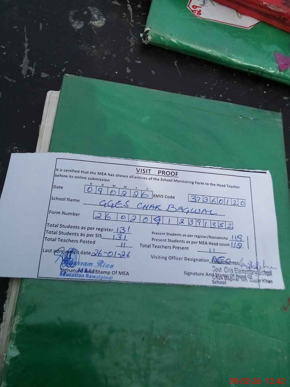 | EMIS Code: 37360120 | Name of School: GGES CHAK BAGWAL | |||