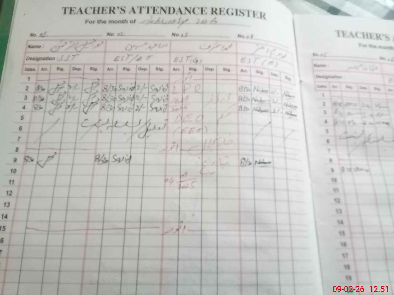 | Name: MJA**** URRE**** Designation: (School Headmaster's/Headmistress's) S.S.T.(G) Phone/Cell Number: 03**** |