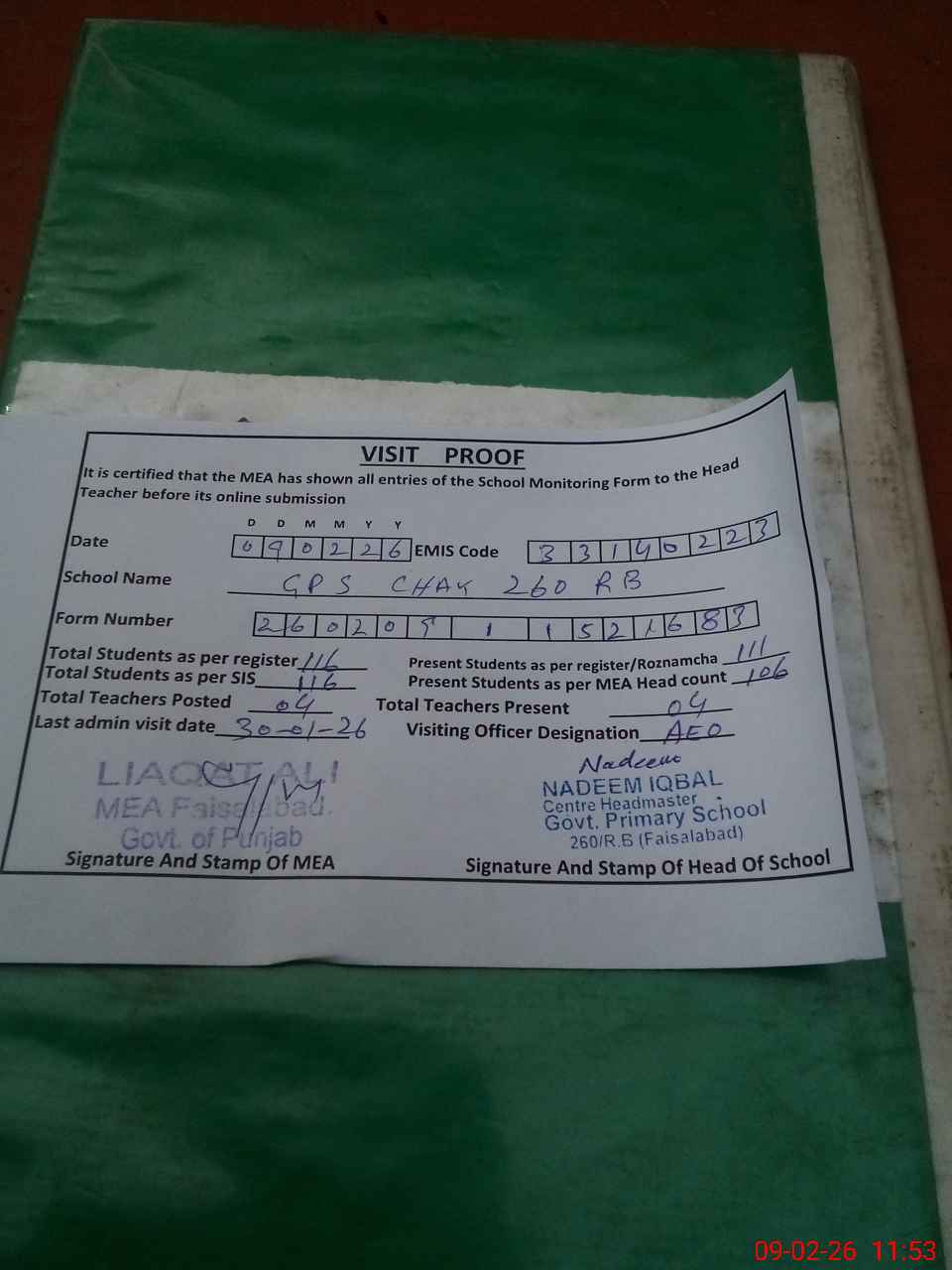 | EMIS Code: 33140223 | Name of School: GPS CHAK 260 RB | |||