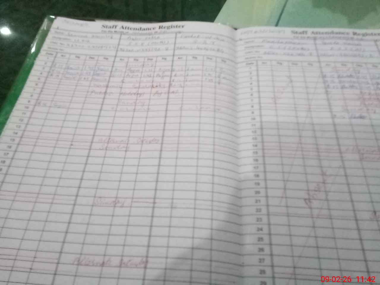 | CNIC | Full Name | Designation | R/C | Absence During Last Calender Month |