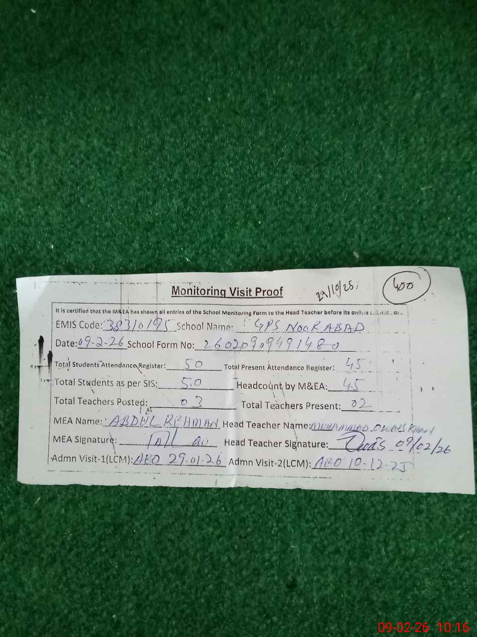 | EMIS Code: 38310195 | Name of School: GPS NOOR ABAD | |||