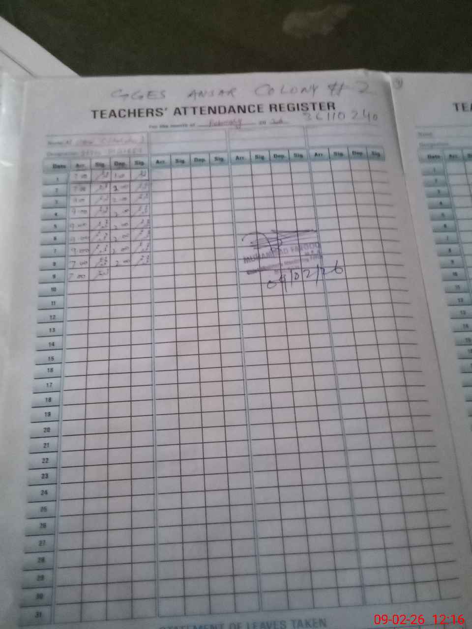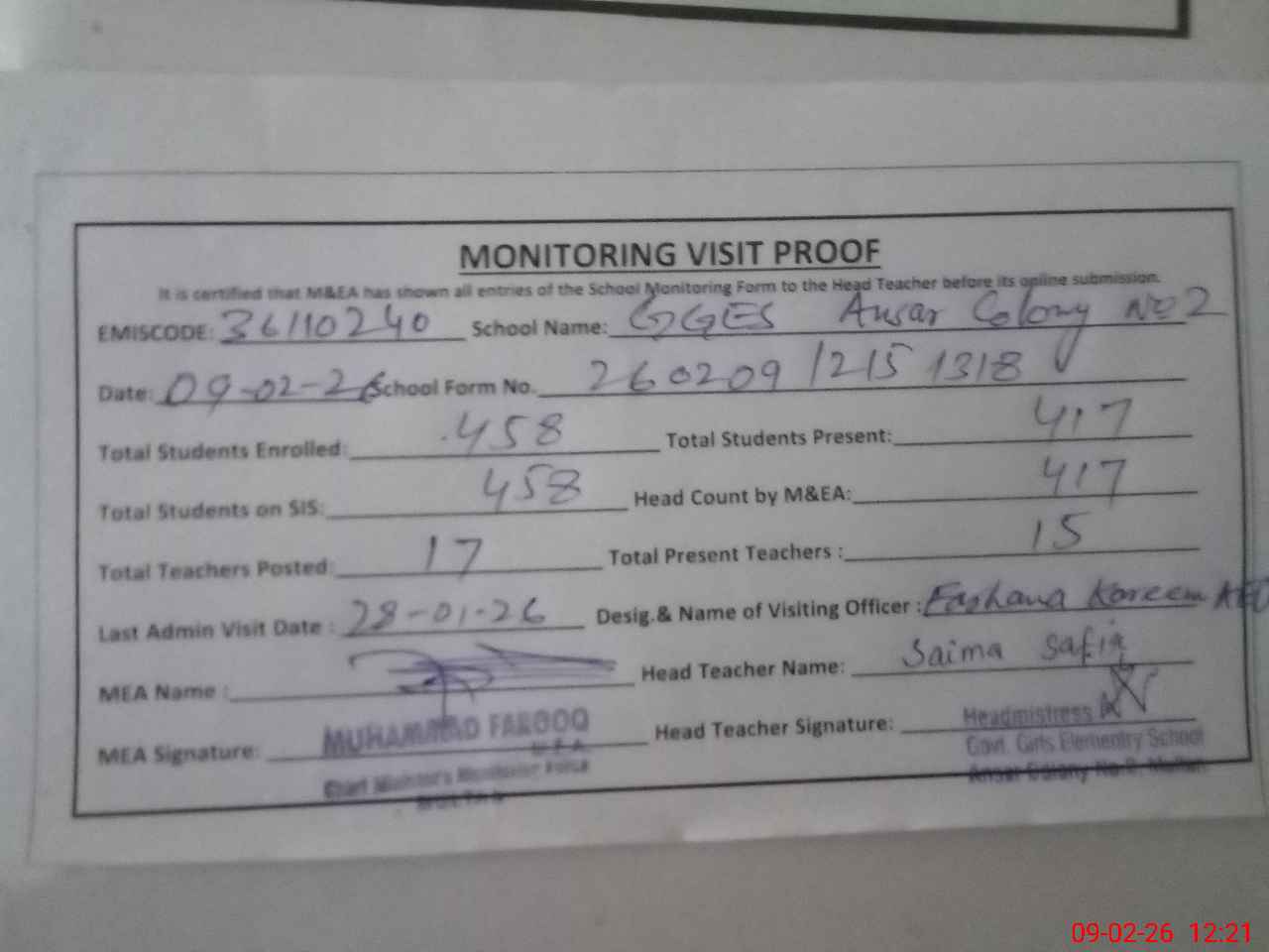 | EMIS Code: 36110240 | Name of School: GGES ANSAR COLONY NO. 2 MULTAN CITY | |||