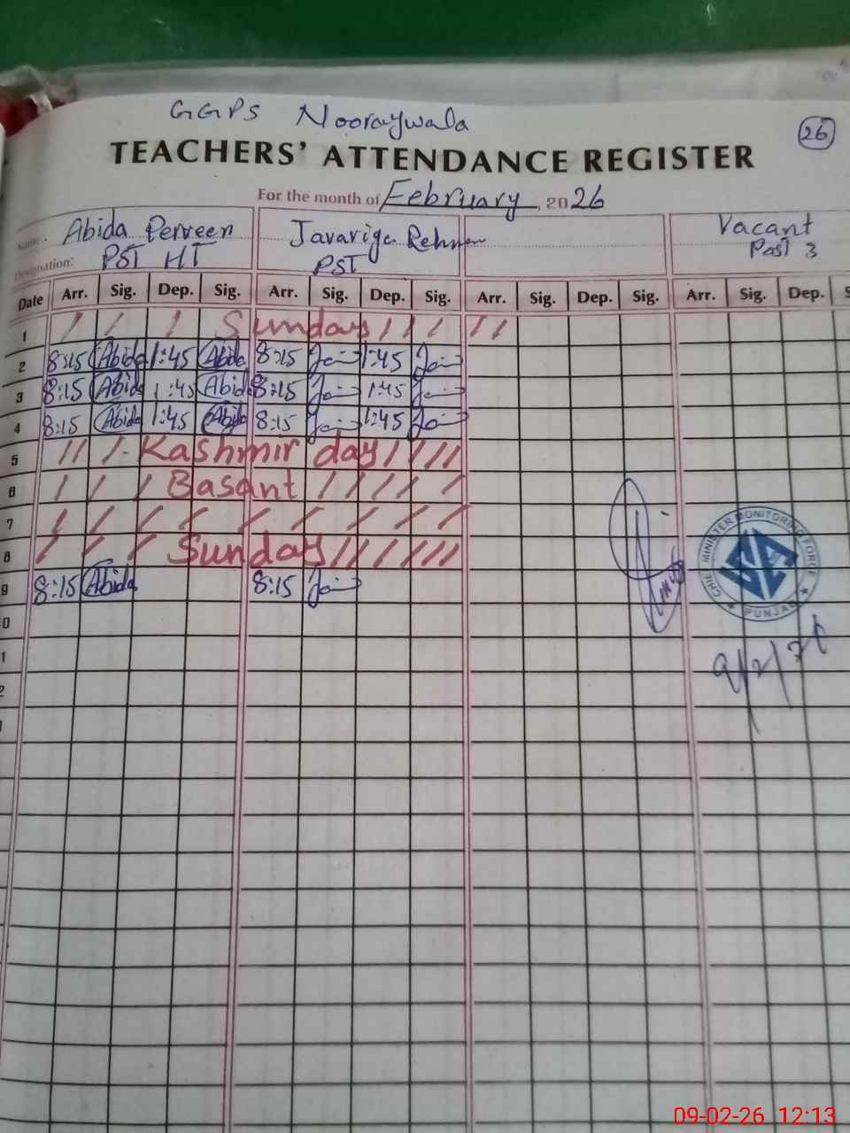 | Monitoring Date: 09-02-2026 | Start Time: 09-02-2026 11:41 AM | End Time: 09-02-2026 12:16 PM | Name of MEA: SH**** AH**** | |