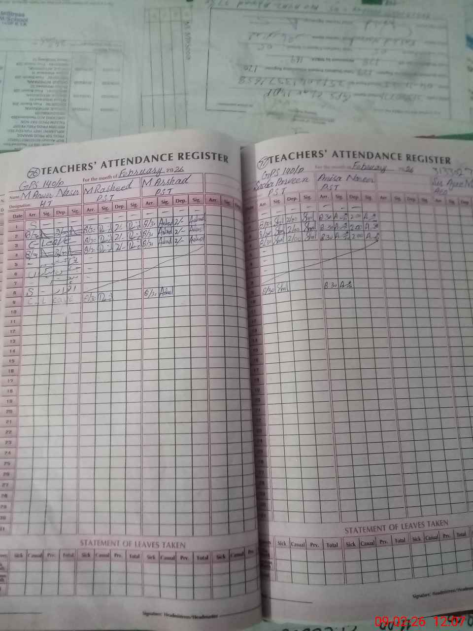 | Attendance Register | Head Teacher | MEA with School | Visit Proof |